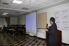 Թոմաս Կարամանոսը (գլխավոր տնօրեն, Ինտրաքոմ Հայաստան) շնորհավորում է ուսանողներին և վերադարձնում լավագույն ուսանողների ուսման վարձը: