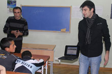 The students are helping the pupils of N14 special school after N.Tigranyan for children with visual impairments to take first steps in Internet.
